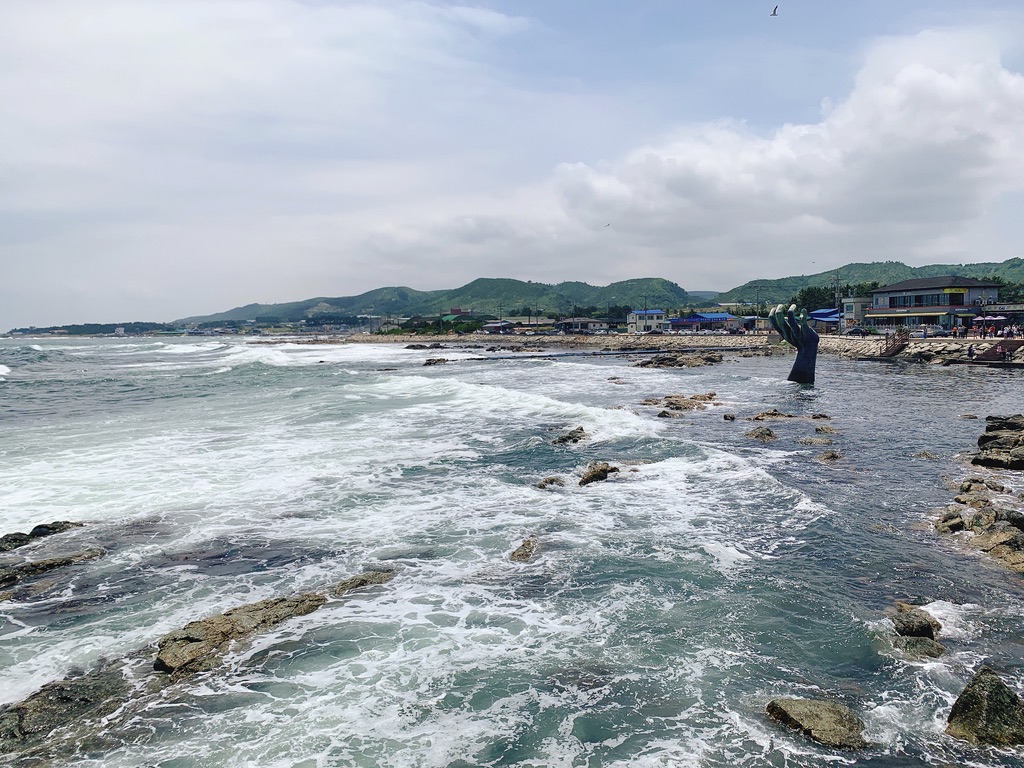 The Hand of Harmony (상생의 손 in Korean) at sunrise is a "Must-see" sculpture of a hand in Pohang. Many Koreans and tourists visit Homigot to see this special monument.