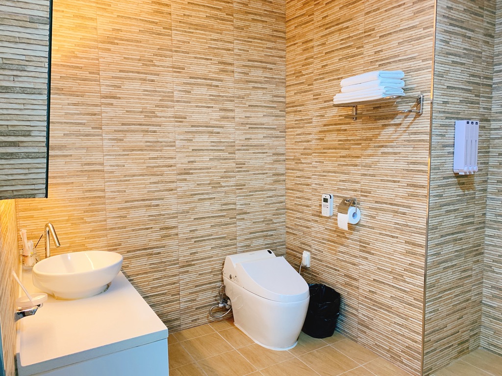 Additionally, the room is surrounded with a white wall and floor so that you can stay in a clean and nice room.
