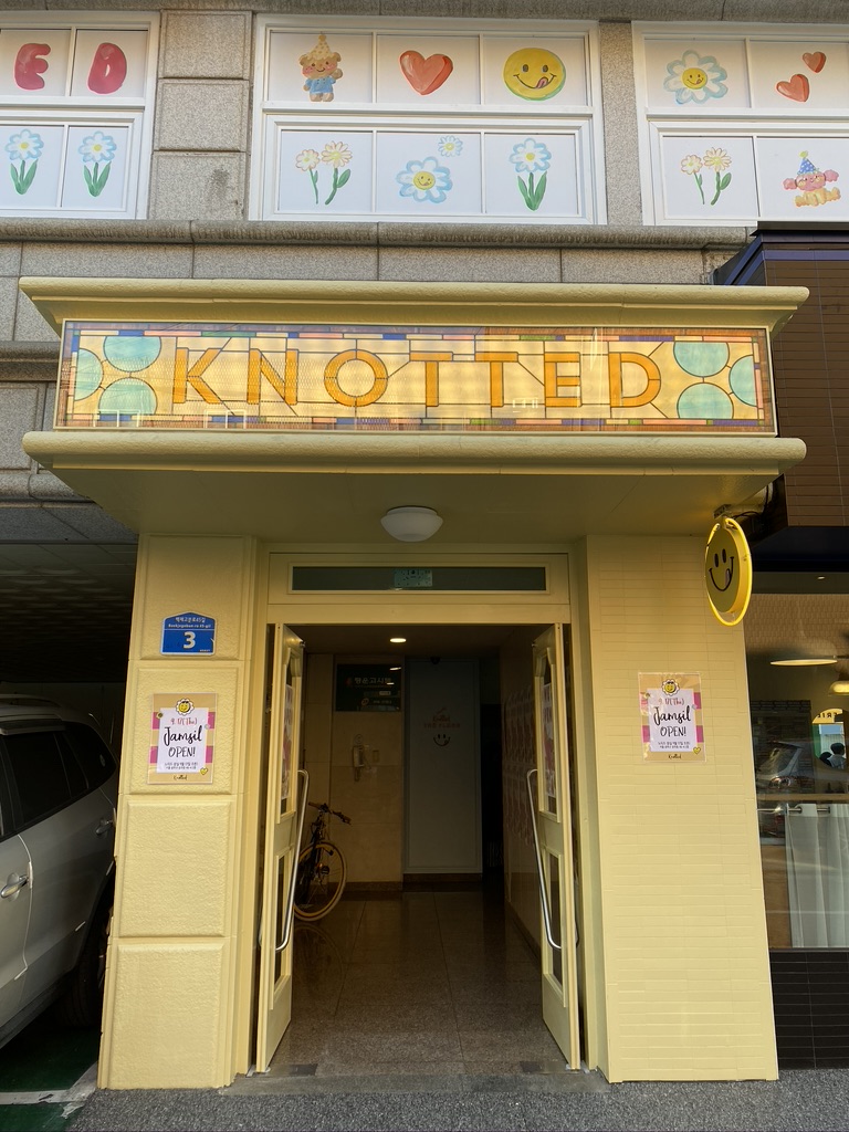 Today, we are going to show you a new store of Cafe Knotted opened in Jamsil. It is located in Songridan-gil in Jamsil where you can find many cafeterias and restaurants.