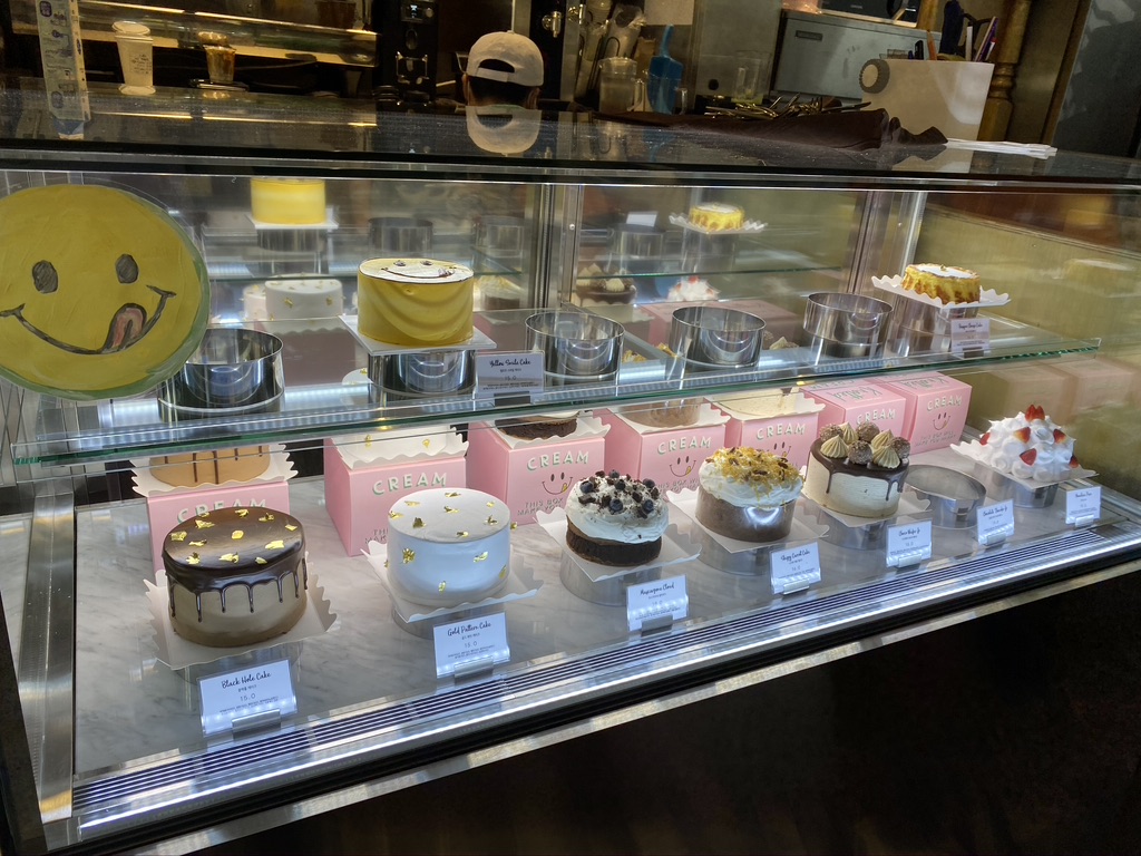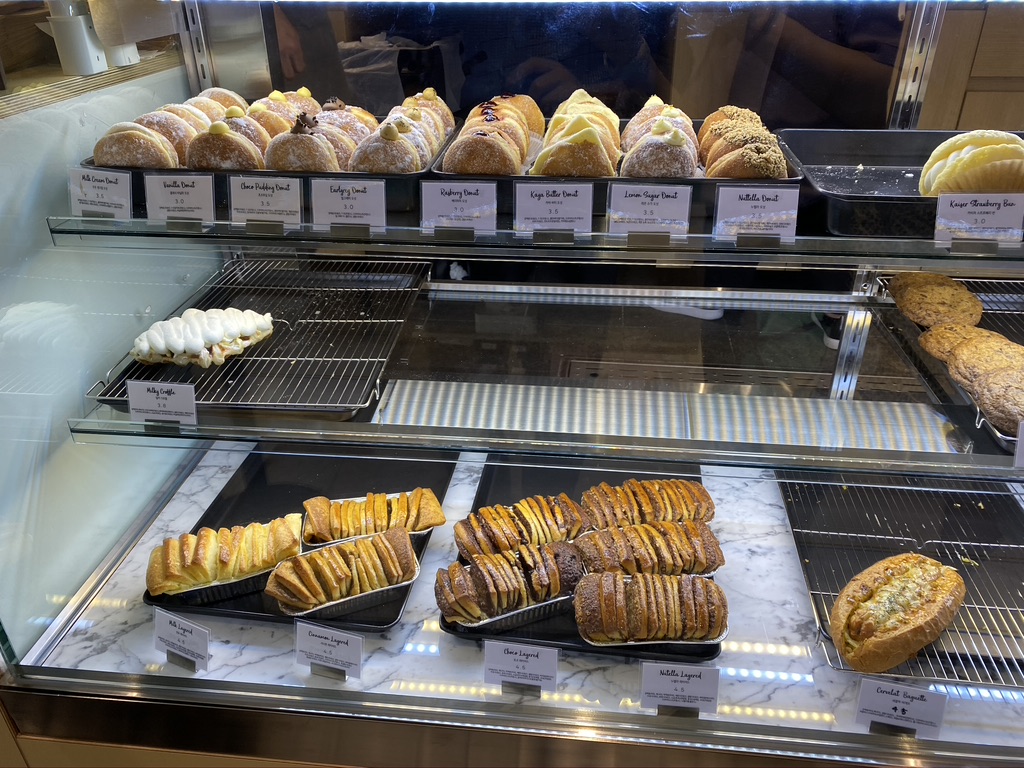 After waiting in a long line and get into a cafe, you can find a various kinds of yummy donuts. You can find not only donuts but also some cakes and other kinds of bread such as croffle, baguette, scone and bun.