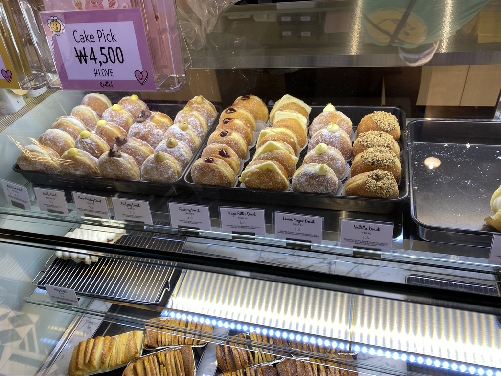 "Cafe Knotted (카페 노티드 in Korean)" is a famous donut cafe in Korea. There are many stores of Cafe Knotted in Seoul such as in Cheongdam, Anguk, Jamsil, Hannam, Seorae and also in Galleria Department Store in Apgujeong. Cafe Knotted is also in Galleria Gwanggyo in Suwon.