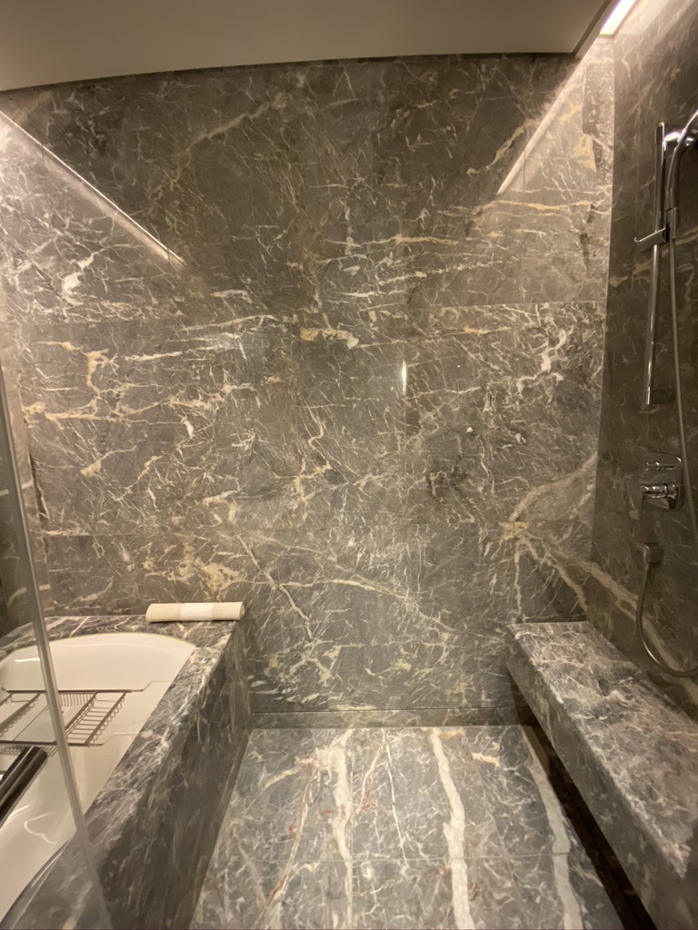There is a spacious bathroom in the room and you will be impressed with the amenities in the bathroom. There are Diptyque (luxe French brand) shampoos, conditioners, body wash, soap and body lotion.