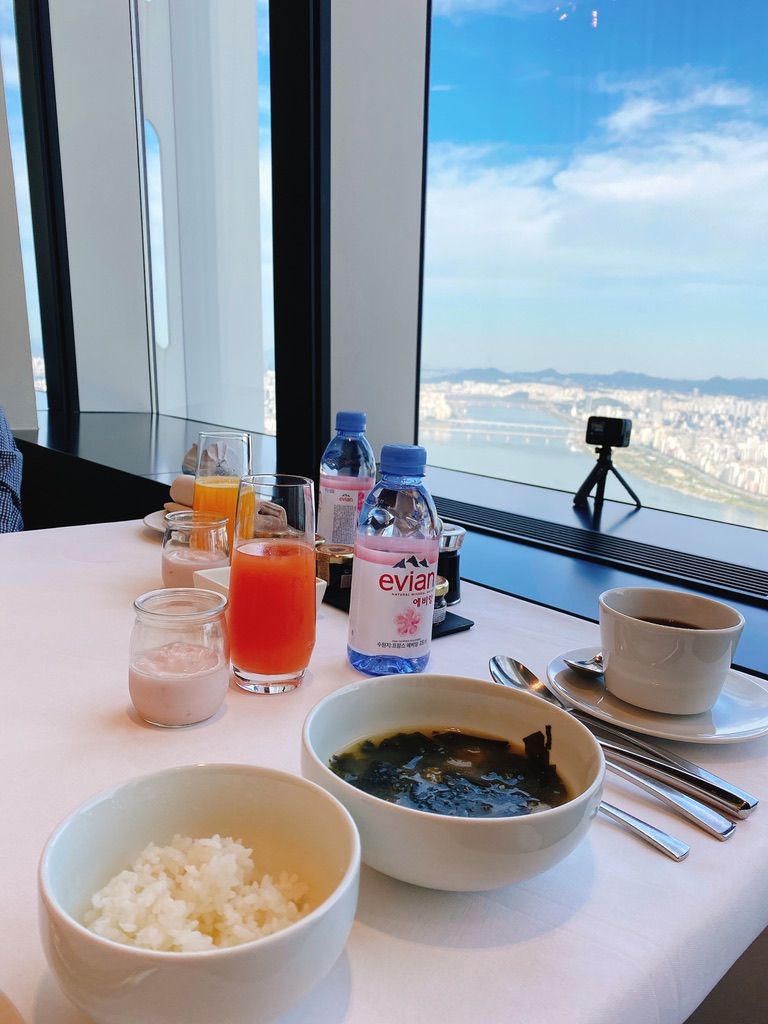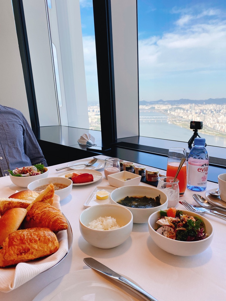 When you book for the room at Signiel Seoul, you can choose whether to include your breakfast meal. If you choose to include it, you can enjoy a buffet style breakfast in general but the breakfast is served by staff these days due to Covid-19.