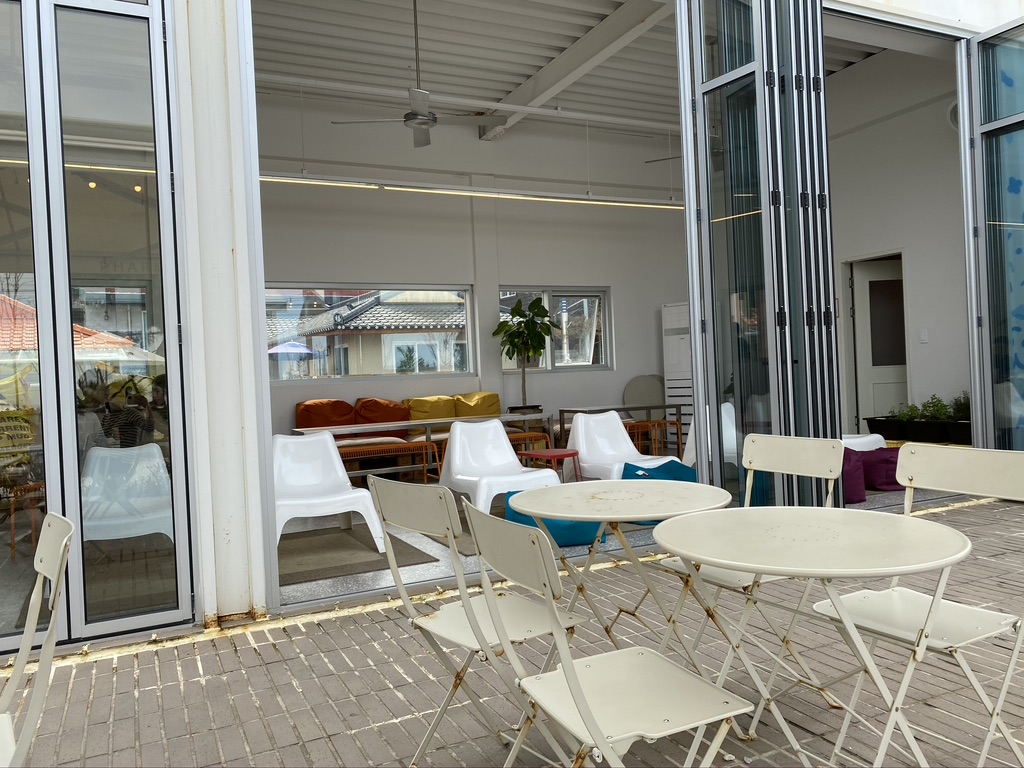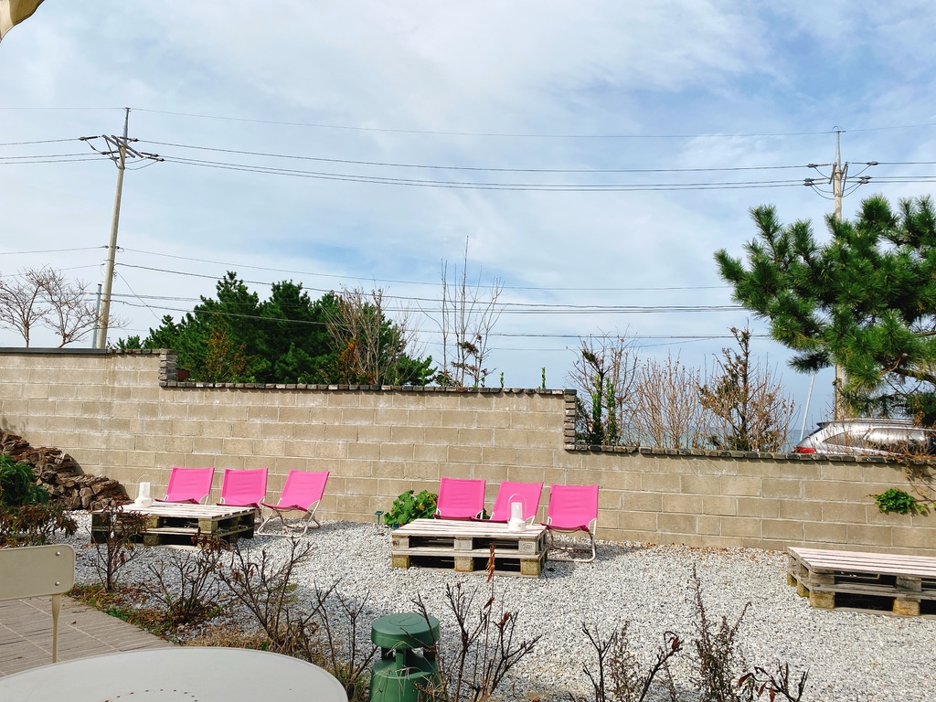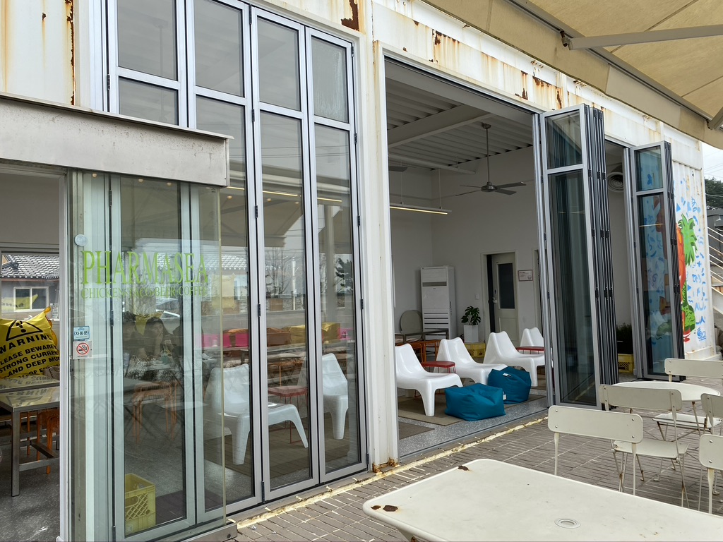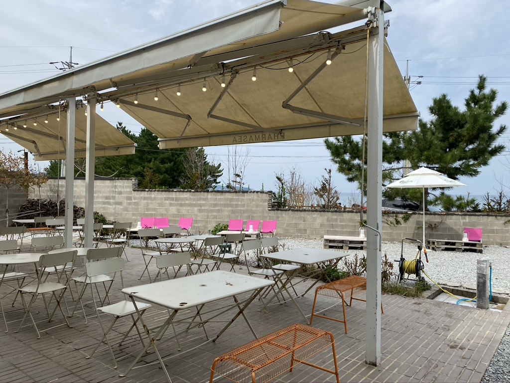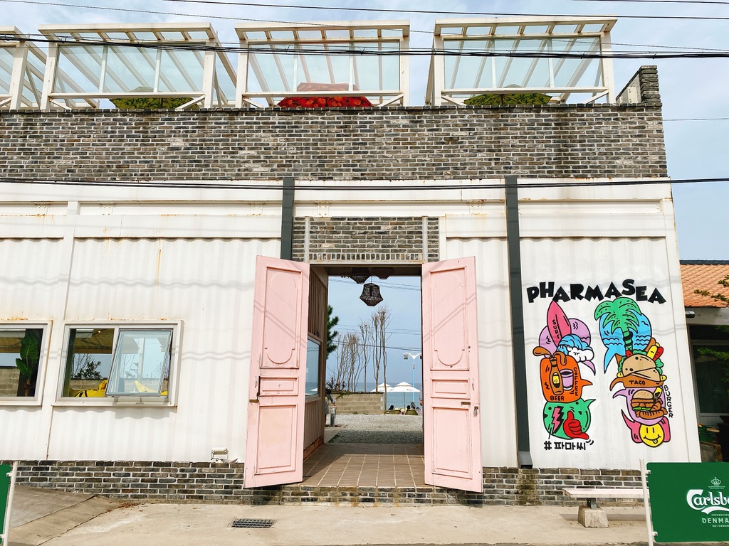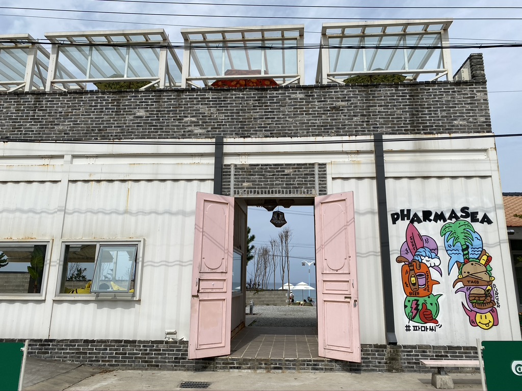 So we are going to introduce one of the cafeterias which is located near Surfyy Beach. The name of cafeteria is "Cafe Pharmasea (카페 파마씨 in Korean)" and it is 10 minutes drive from Surfyy Beach.