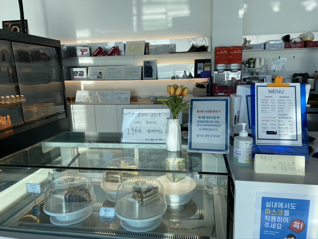 Hangang Museum is one of those cafes and this cafe is a bit more unique than other cafeterias as you can find a lot of art work in this cafeteria.