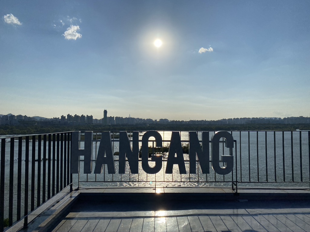 You can see "Hangang" and "한강" letters, which means Han River, and this is a great photo spot for you.
