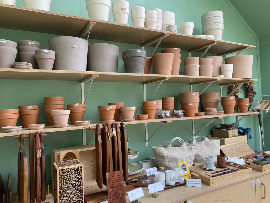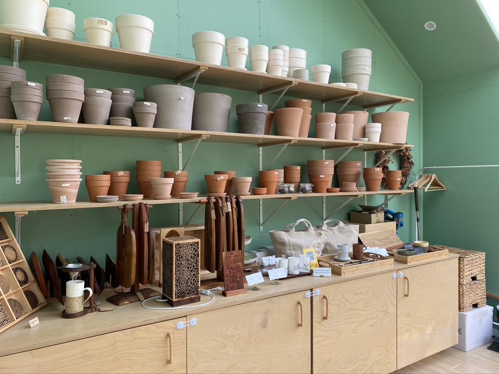Additionally, there are some plant pots, cups, plates, cup coasters, cutting boards that are used in the kitchen and some bags and other various kinds of items that are on sale for visitors.