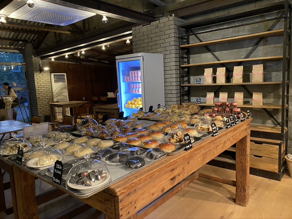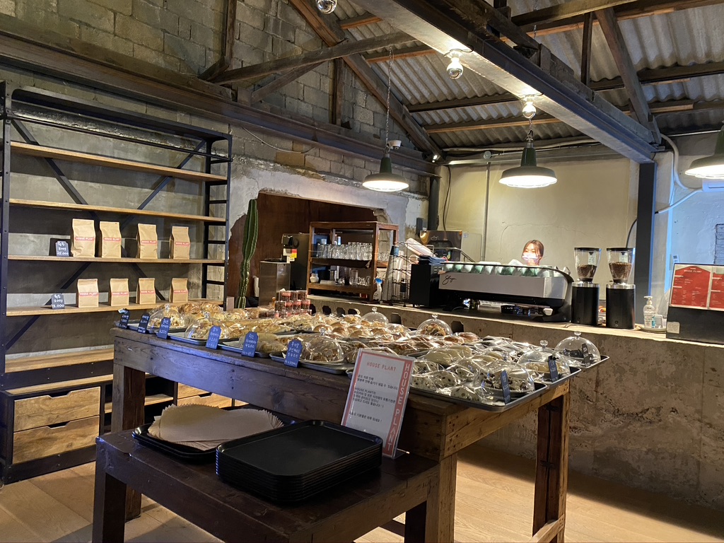 You can feel the industrial vintage vibes inside the cafeteria. There are various bakery menus such as scones, red bean bread, mocha bread, salt butter bread, ciabatta, alcong (beans and red beans) and dalcong (sweet cream cheese) bread.