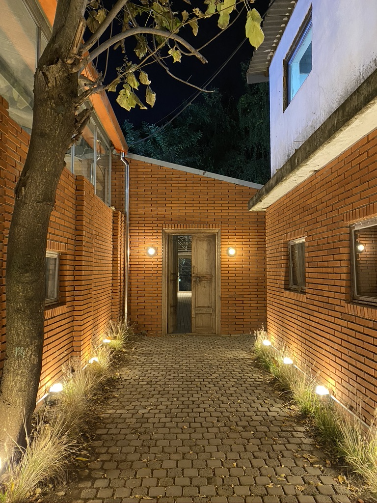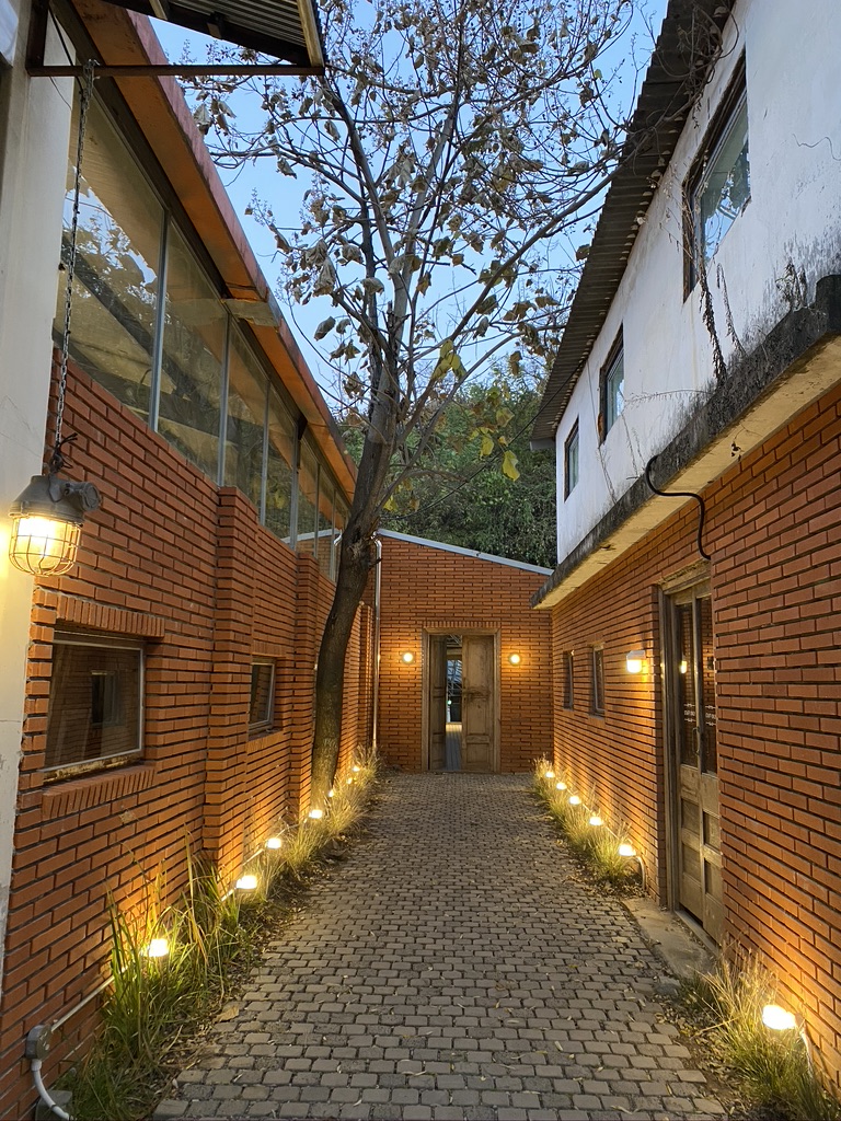 Here is a famous photo spot at the cafe "House Plant". Most of the visitors stand here and take a photo with this background. This spot has retro vibes of buildings with a red brick background, which is a perfect photo spot for visitors.