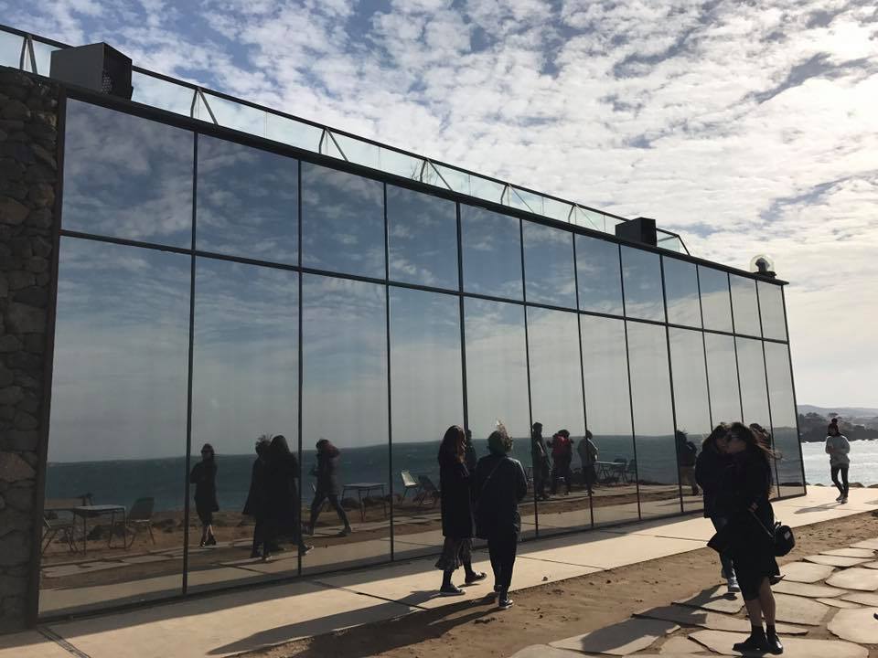 It is surrounded by an awesome glass wall and many visitors take selfie pictures there but you should be aware of that people inside the cafe are watching people outside who are taking pictures.lol