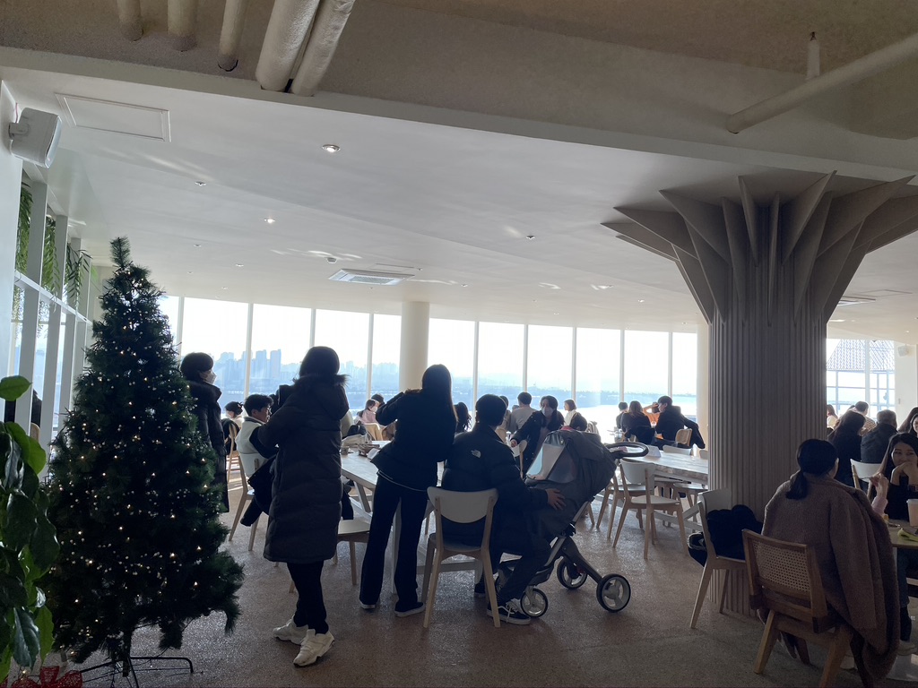 There are several seats and tables both inside and outside the cafeteria. As there is a large glass wall inside and outside the cafeteria, you can enjoy beautiful Han River view at the cafeteria. Rooftop is a place where you can enjoy outside the cafeteria.