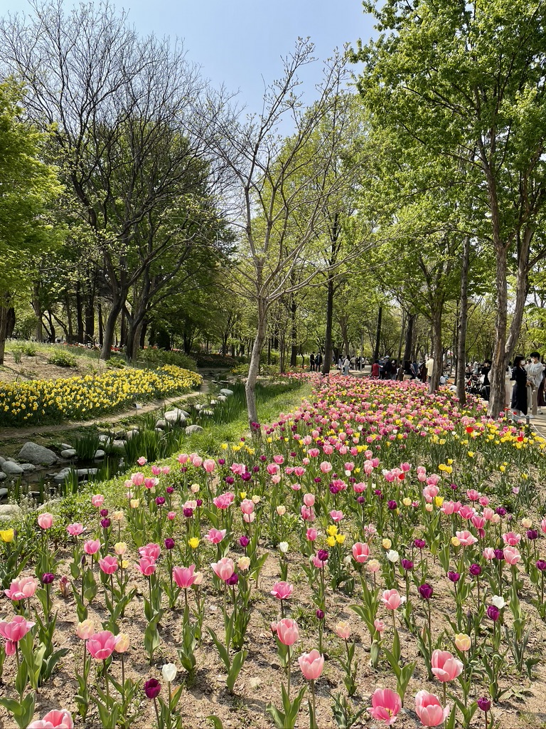Seoul Forest Park is especially popular in spring and in autumn as you can enjoy cherry blossoms and tulip festivals in spring and ginko trees in autumn.