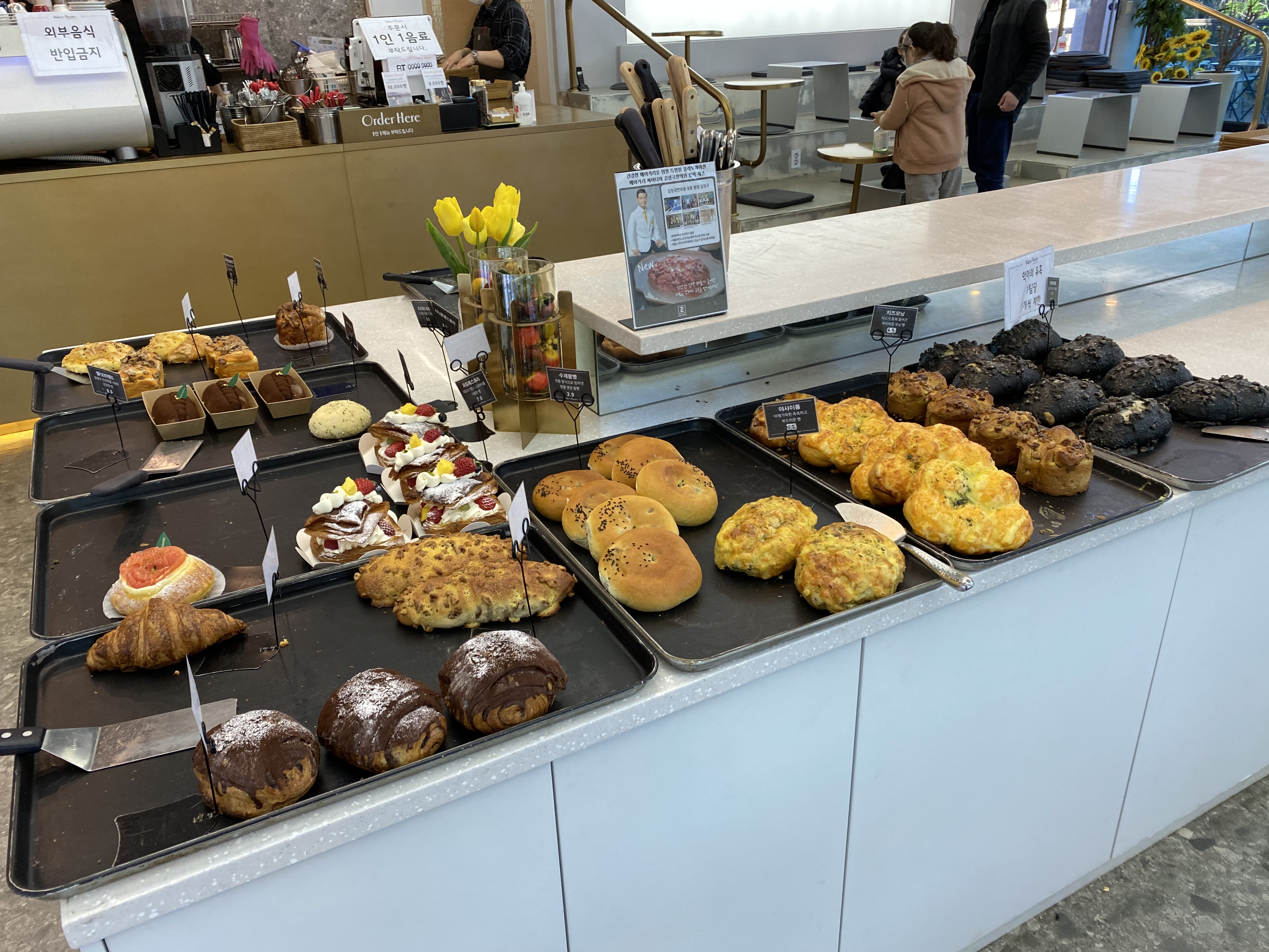 There is a signature bread menu called "Temptation of Devil (악마의 유혹 in Korean)" so I tried it with milk tea. It is made of glutinous rice and cream cheese. In this cafe, they do not put chemical additives when baking bread so it has healthy taste.